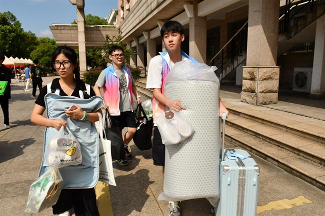 来自舟山的胡馨尹是戏剧影视学院的一名新生,报到时心情很激动:“今天走进校园感受到了浙艺浓厚的艺术氛围,报到时老师们十分和蔼可亲,能够被浙艺录取感觉很幸运。希望接下来努力学习,取得好成绩,获得奖学金。”一旁的胡馨尹母亲同样感到欣喜:“我们尊重也十分理解孩子的选择,希望她在未来的日子里克服困难,勇敢向前,作为父母,我们会一直是她坚实的后盾。”