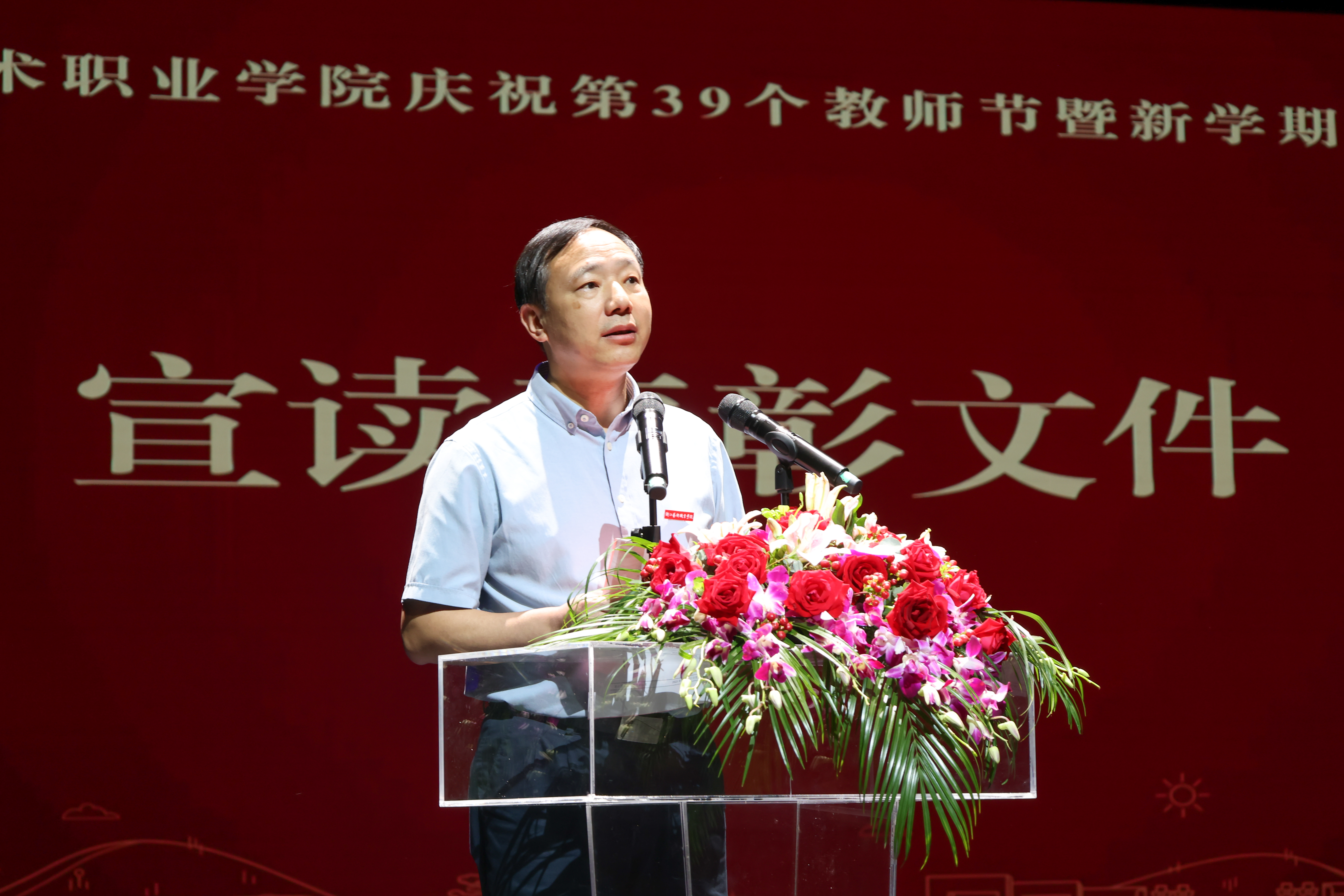 9月15日下午,浙江艺术职业学院庆祝第39个教师节大会暨新学期全校大会在浙江实验艺术剧场举行。校党委领导班子成员出席,全体教职员工参加。党委书记薛亮主持大会。