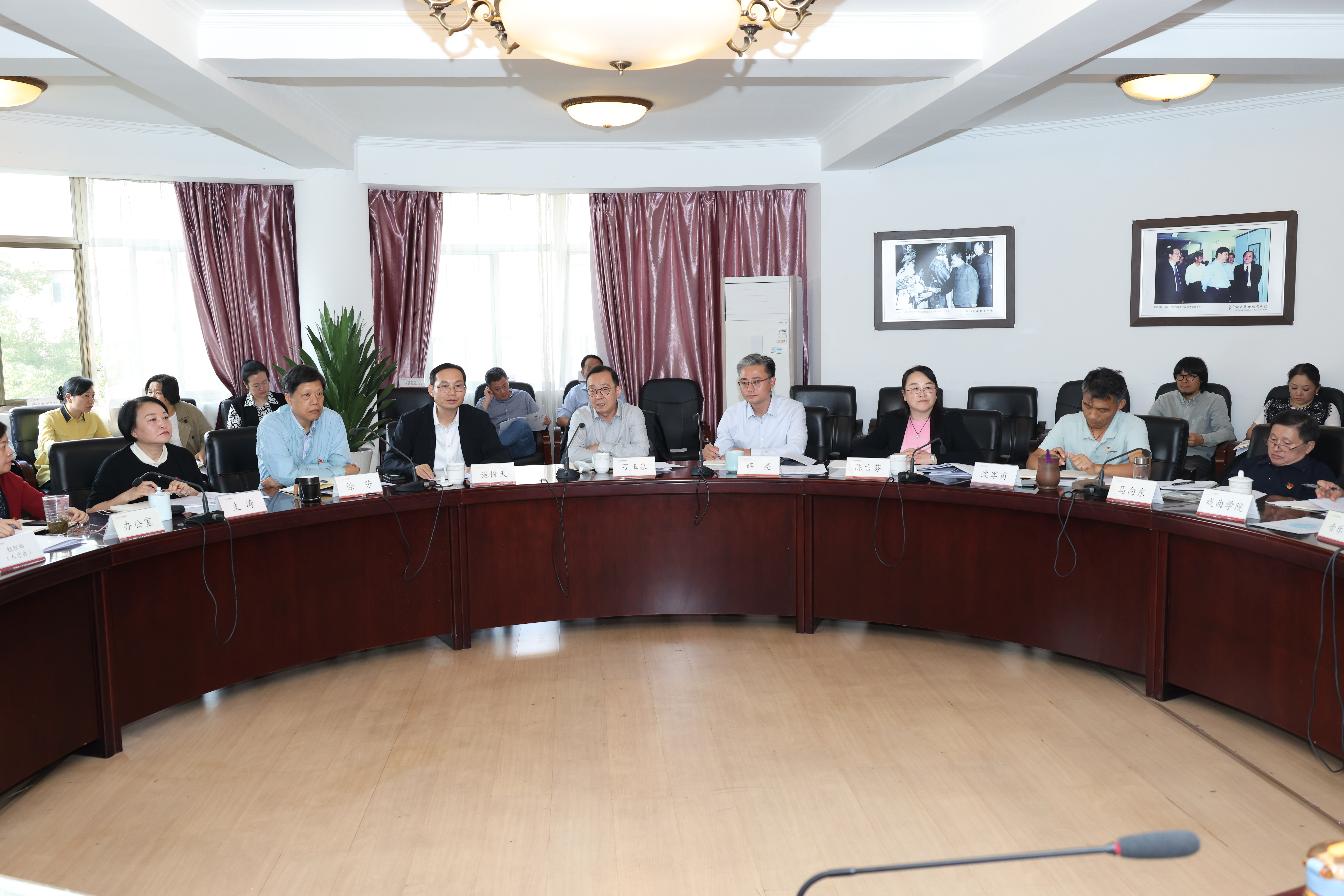 10月12日下午,浙江艺术职业学院召开党委理论学习中心组扩大学习会,传达学习贯彻习近平总书记考察浙江重要讲话精神。省文化和旅游厅党组成员、副厅长、第一巡察组组长刁玉泉到会指导,校党委书记薛亮主持学习会。校党委班子成员,职能教辅部门负责人、各二级学院党政负责人参加学习并作交流发言。