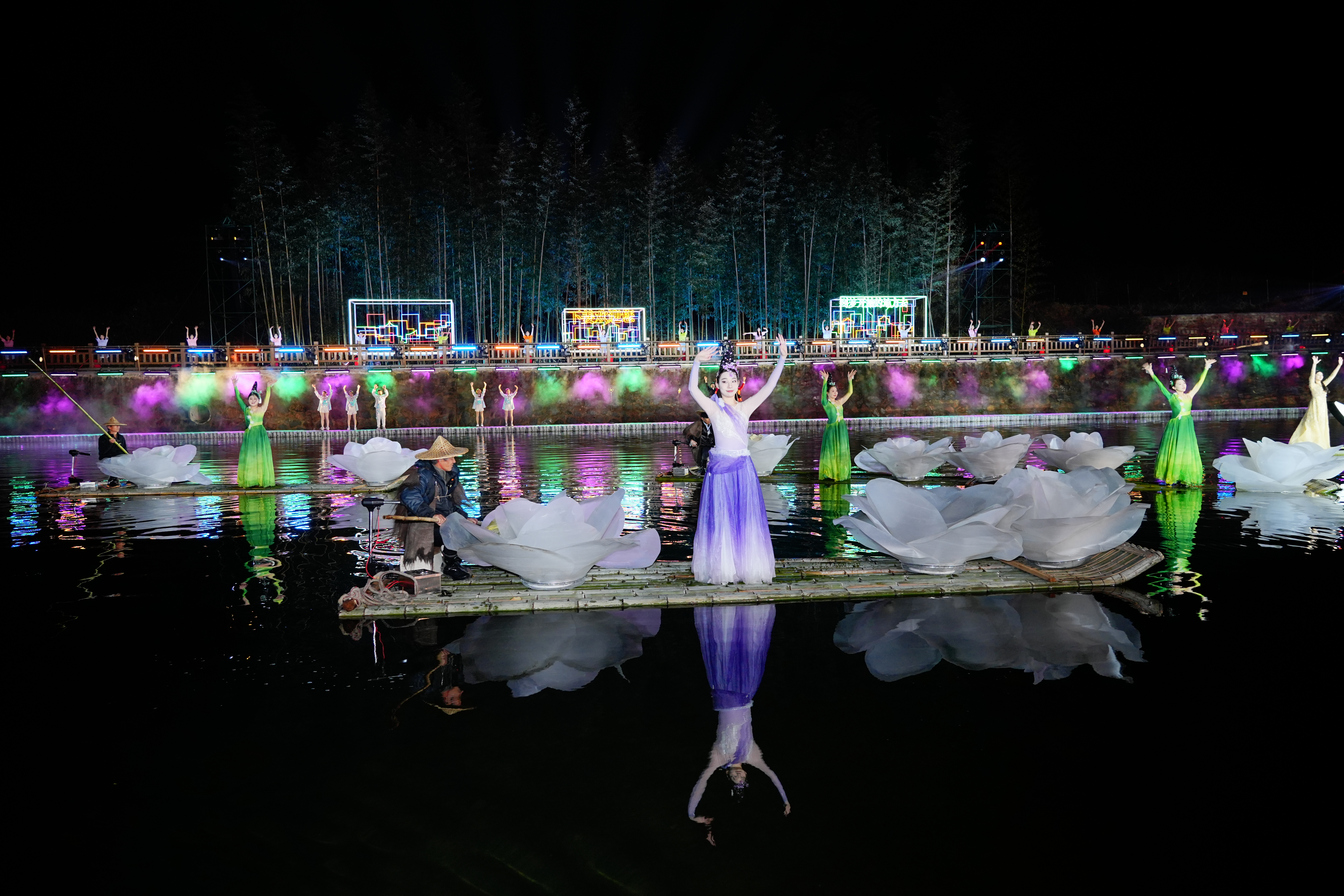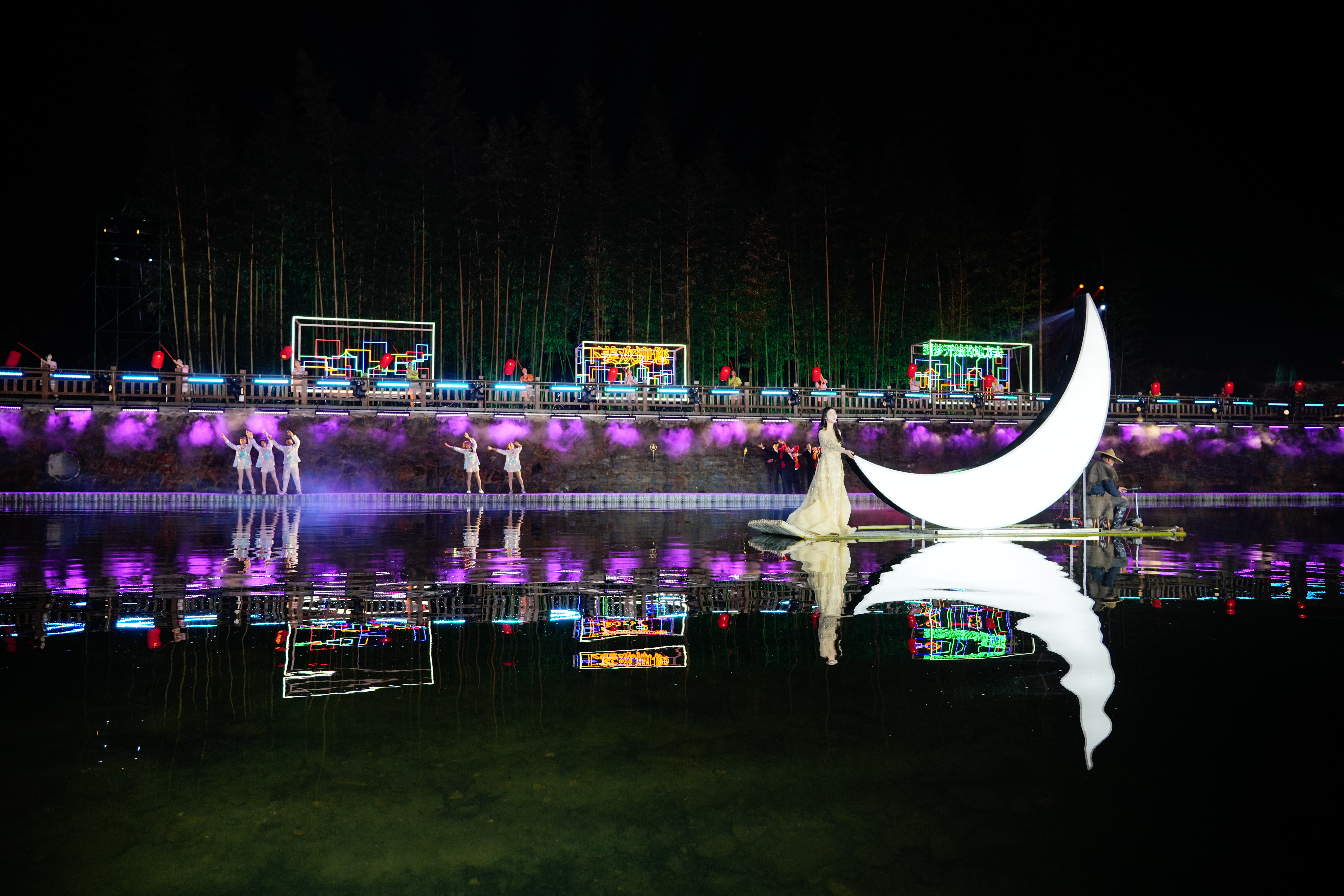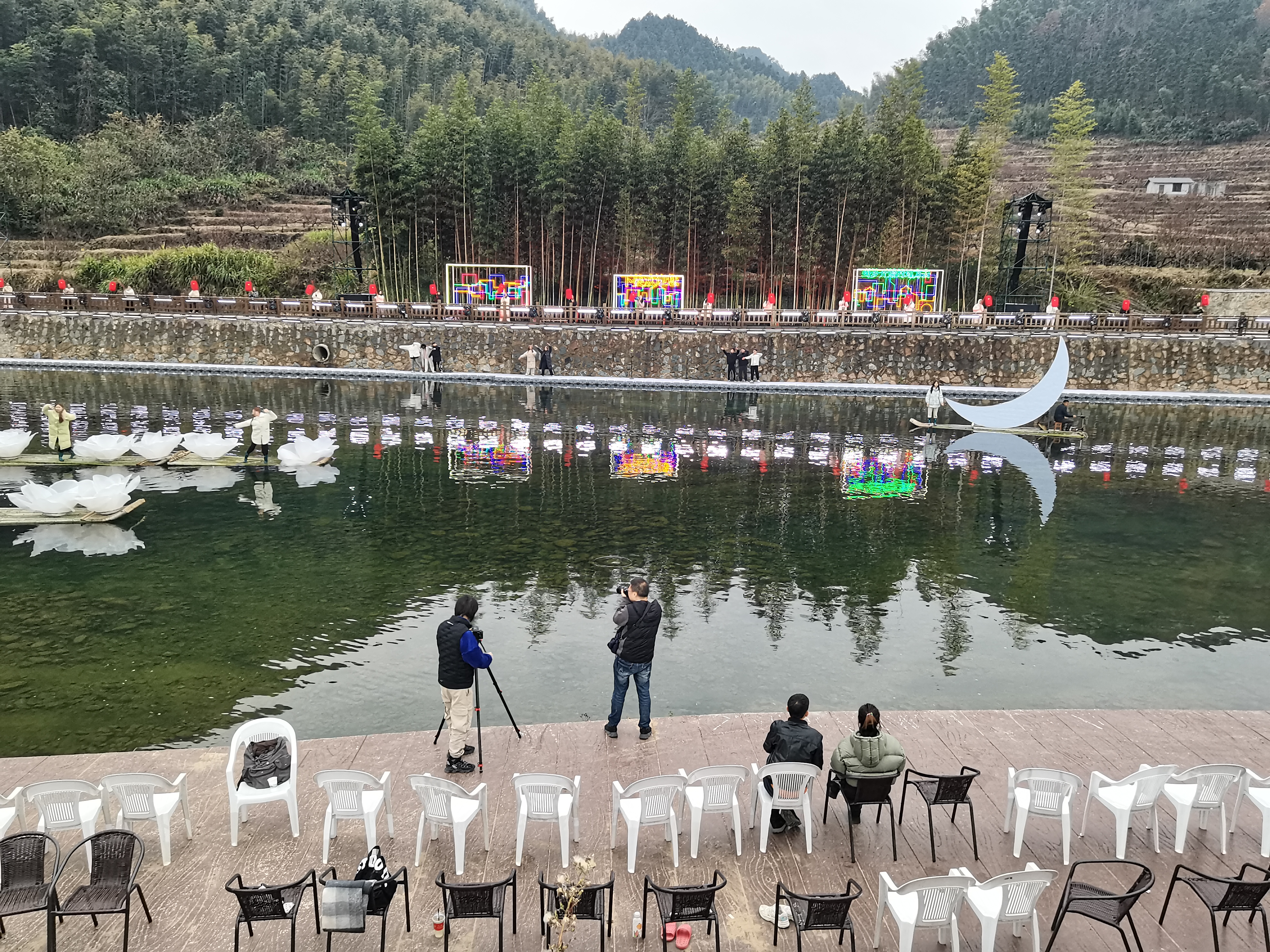 演艺专业学生林家妮说:“到达下姜村第一晚就与水上舞台进行磨合,这种演出形式让我感到新奇和激动。到了深夜,气温骤降,为了演出能够完美呈现,大家咬牙坚持,全身心投入排练。希望今后能将更多艺术作品带给乡村百姓,为建设美丽乡村贡献青春力量。”
