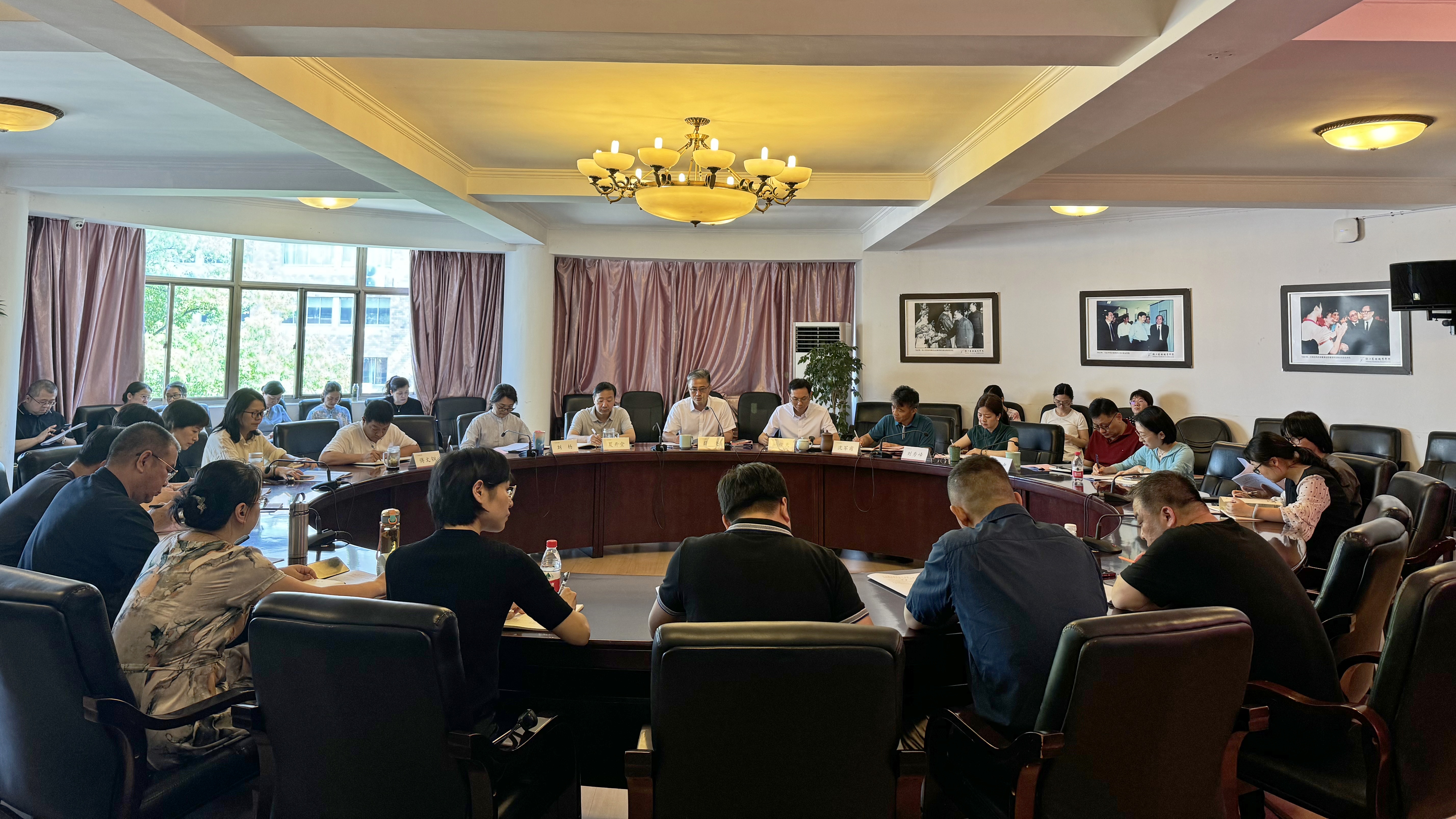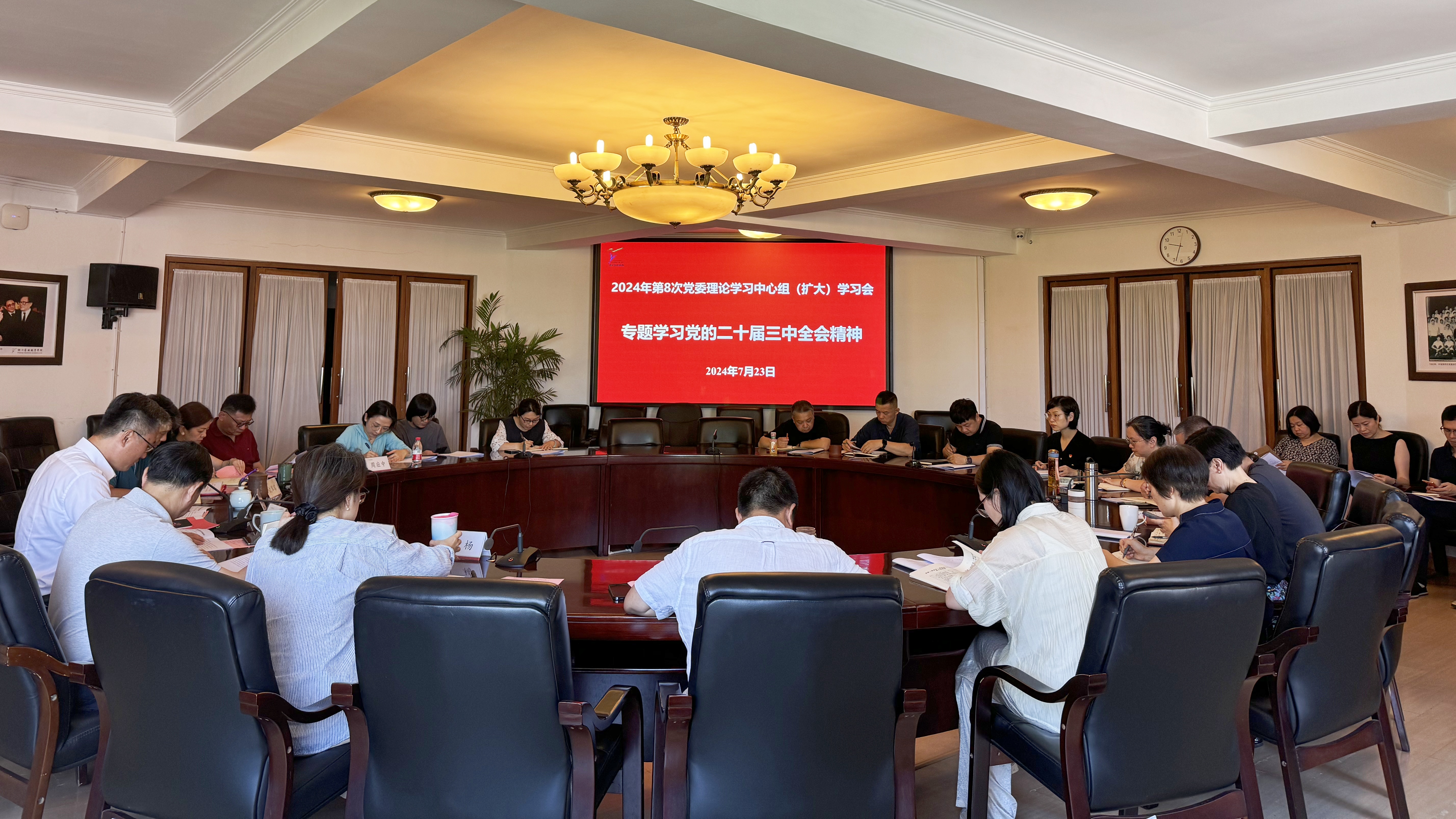 7月23日上午,浙江艺术职业学院召开党委理论学习中心组(扩大)学习会,学习传达党的二十届三中全会精神。校党委书记薛亮主持会议并讲话,校党委班子成员,职能教辅部门主要负责人、二级教学单位党政主要负责人参加学习。