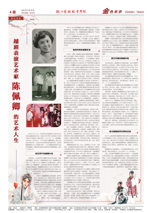 越剧表演艺术家陈佩卿的越剧艺术人生(作者:马向东)
