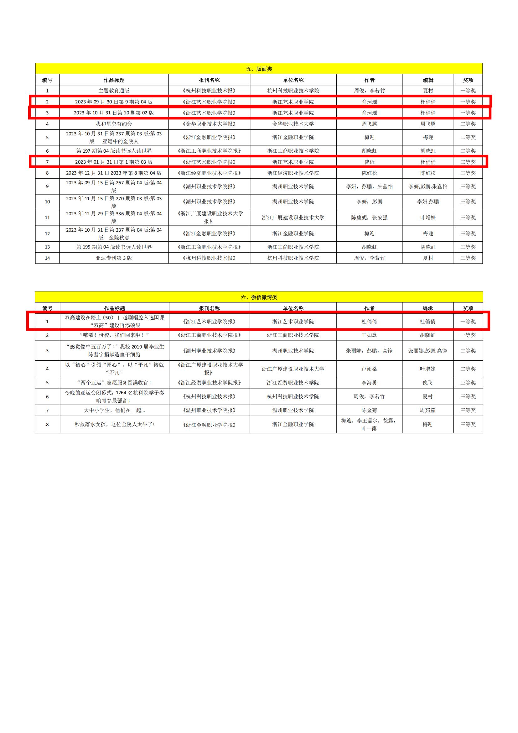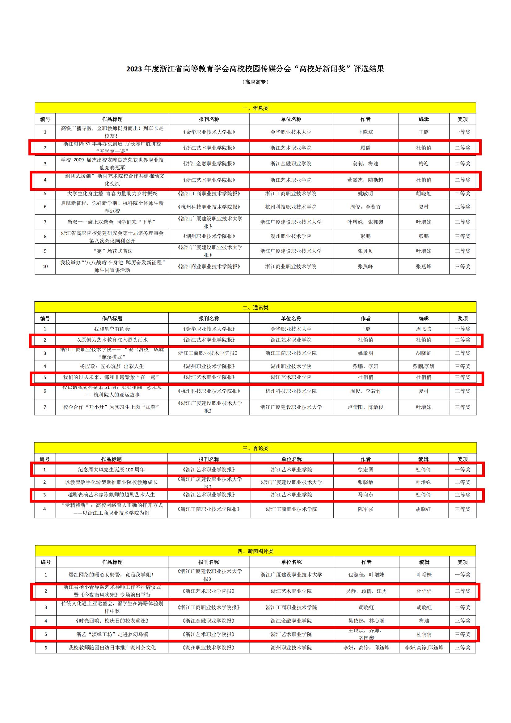近日,浙江省新闻工作者协会、浙江省高等教育学会高校校园传媒分会公布了2023年度浙江省高校好新闻作品评选结果,我校在通讯类、言论类、新闻图片类、版面类、微信微博类等全部6大类中均有斩获,共有12个作品获奖。其中,一等奖4项,二等奖5项,三等奖3项,获奖数量蝉联全省高职高专类榜首。