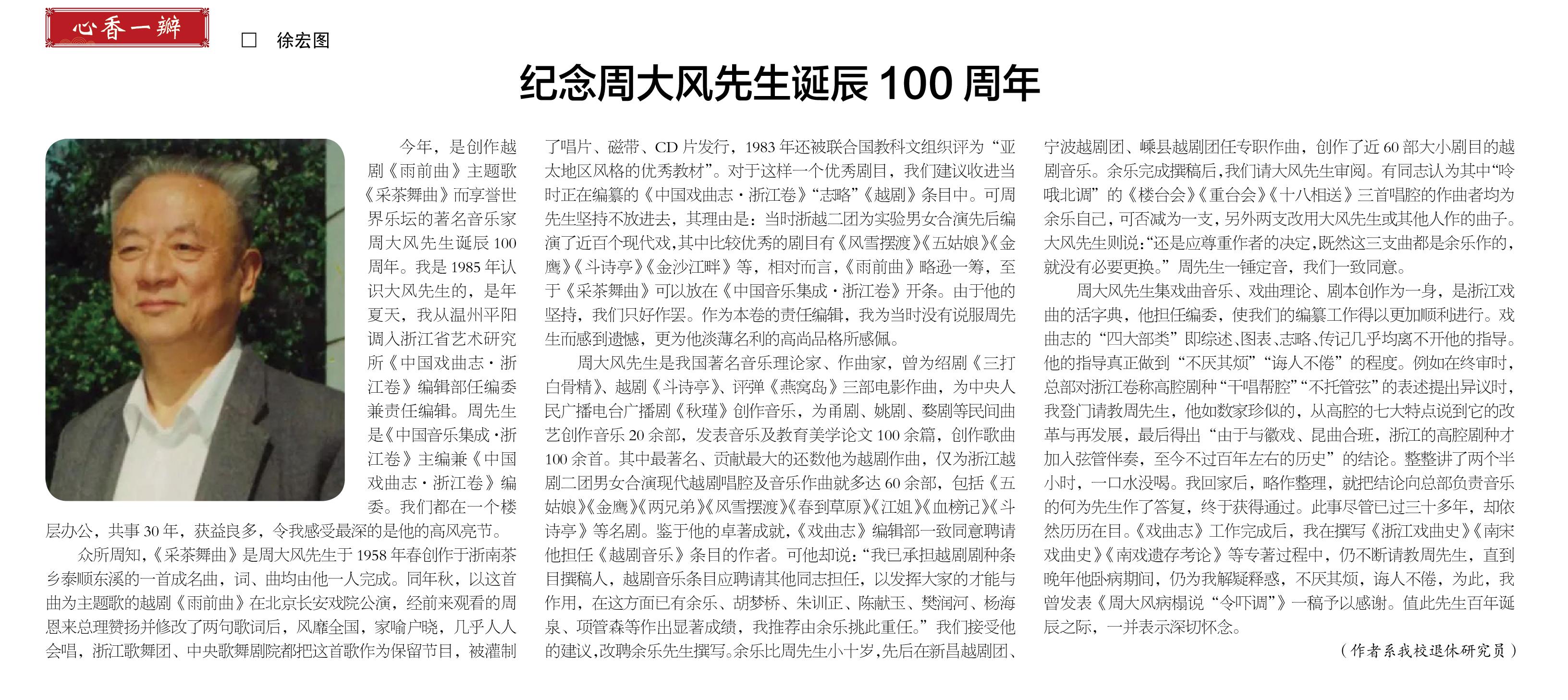 纪念周大风先生诞辰100周年(作者:徐宏图)