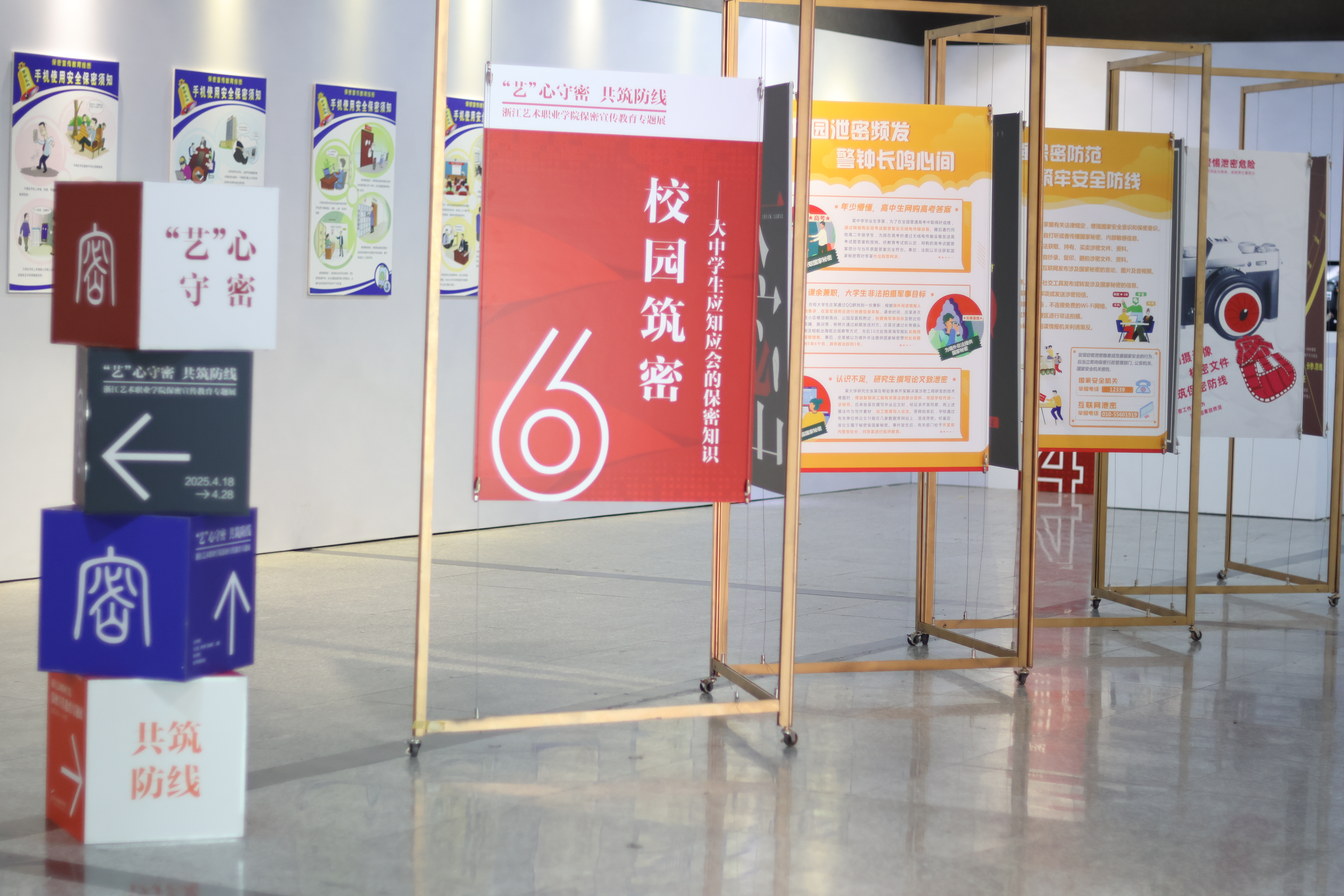 为深入推进学习宣传贯彻新修订保密法及其实施条例,切实提升师生保密意识和能力,4月18日至4月28日,我校举办“‘艺’心守密 共筑防线”保密宣传教育专题展。展览创新融合艺术与保密教育元素,以丰富多样的展陈形式,为师生呈现了一场兼具教育意义与艺术美感的视觉之旅。