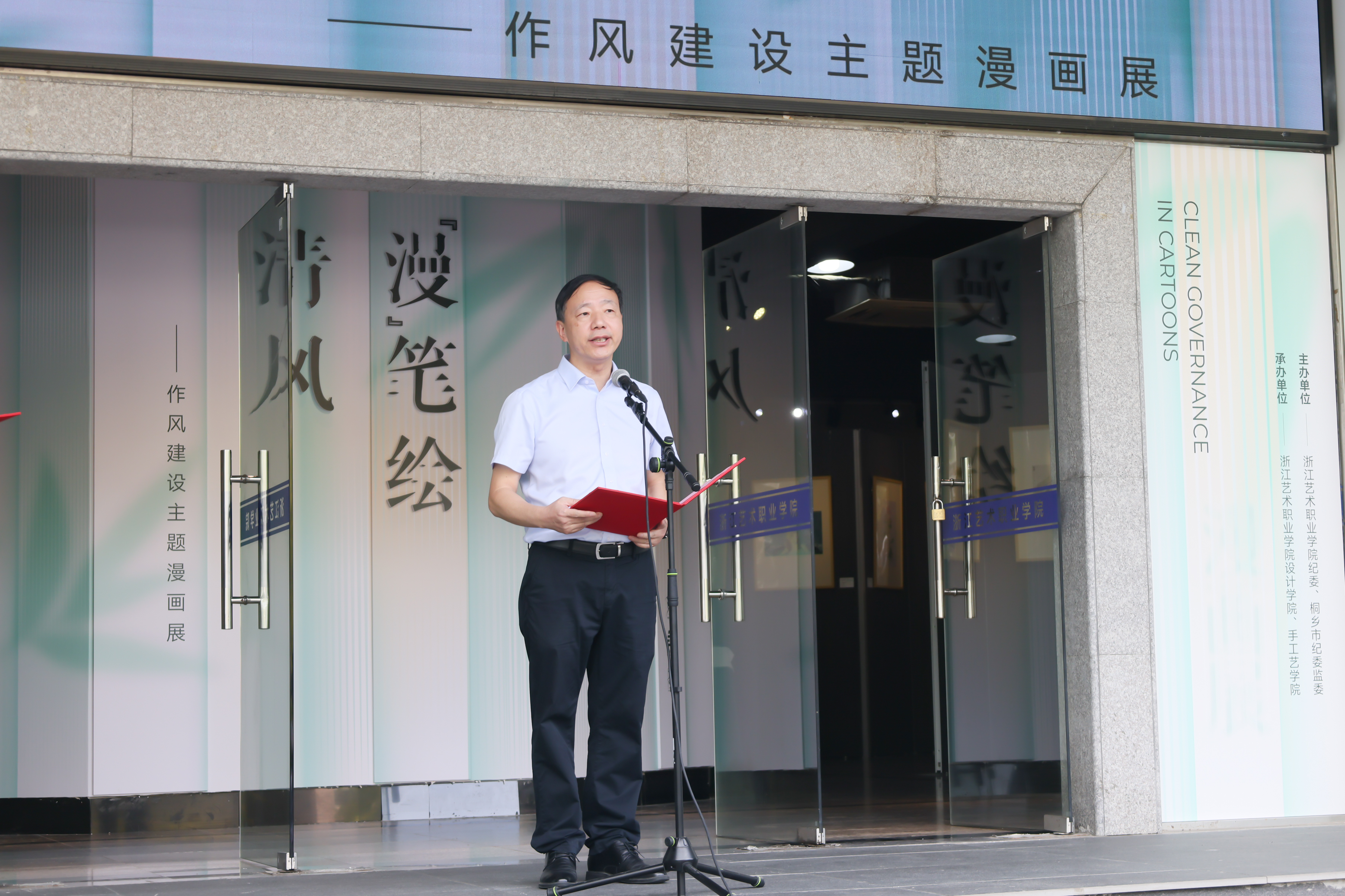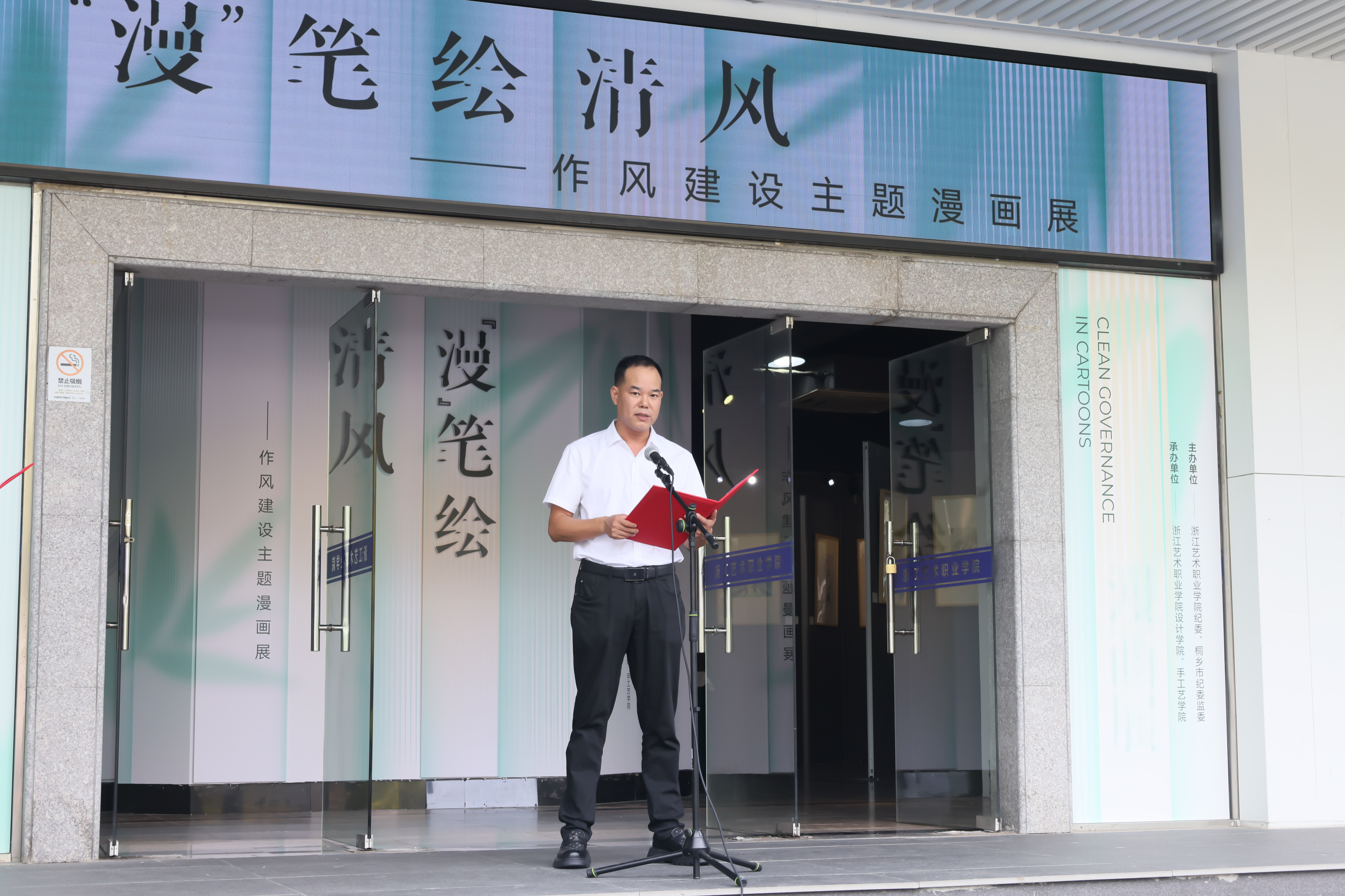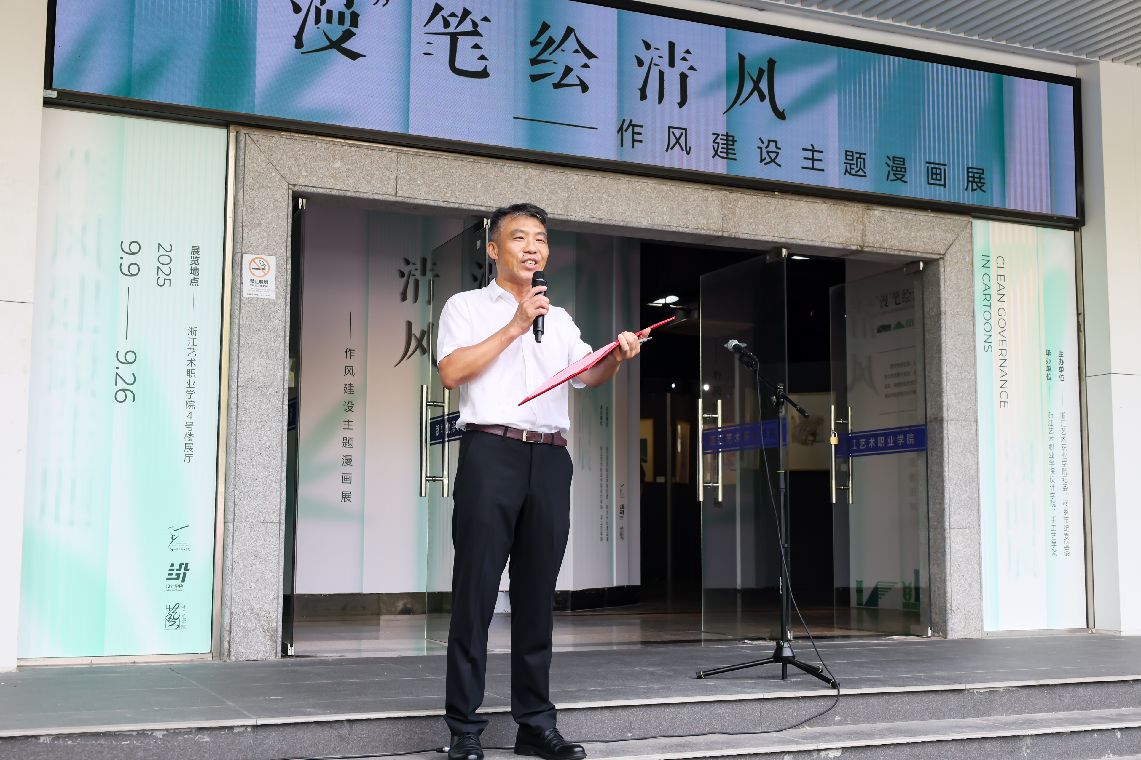 9月9日上午,由浙江艺术职业学院纪委与桐乡市纪委监委联合主办的“漫笔绘清风”作风建设主题漫画展在设计学院展厅开幕。本次展览旨在深入学习贯彻习近平总书记关于党的作风建设的重要指示精神,进一步巩固和拓展中央八项规定精神学习教育成果,推动“清廉浙艺”建设向纵深发展,营造风清气正、崇廉尚洁的校园环境。