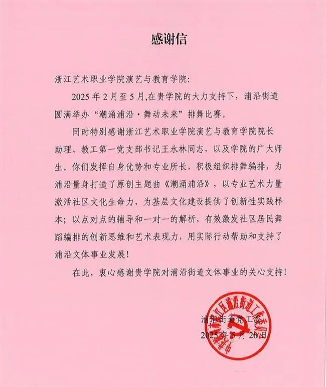 艺术赋能,塑造“基层样本”:学院以文化特派员、校地合作为主要路径,精准对接基层需求,将艺术创造力注入乡村振兴一线。通过打造“罗小西”儿童剧团,原创剧目《家在状元》当地群众惠及面超70%;开展“潮涌浦沿·舞动未来”排舞项目,覆盖26个社区;持续推进“潞村行”“余杭美丽洲大舞台”“下姜村梦开始的地方”“腾蛟镇历史名人文化节”“唱响龙游”等特色文旅演出,积极承接“流动少年宫进社区”“三服务”等系列活动,将优质文化资源持续输送到基层一线,推动艺术赋能从落地见效向生根发芽的深度转化。