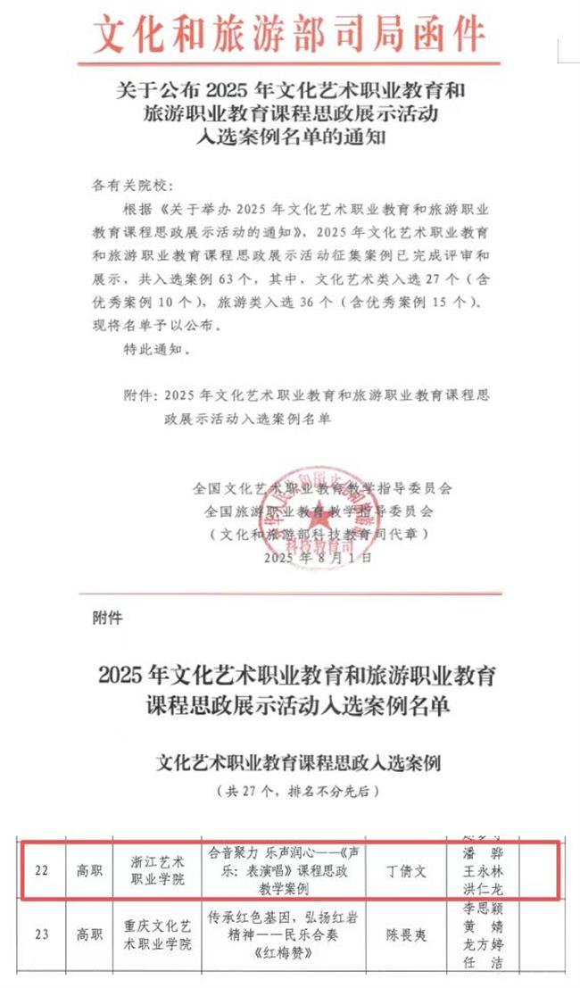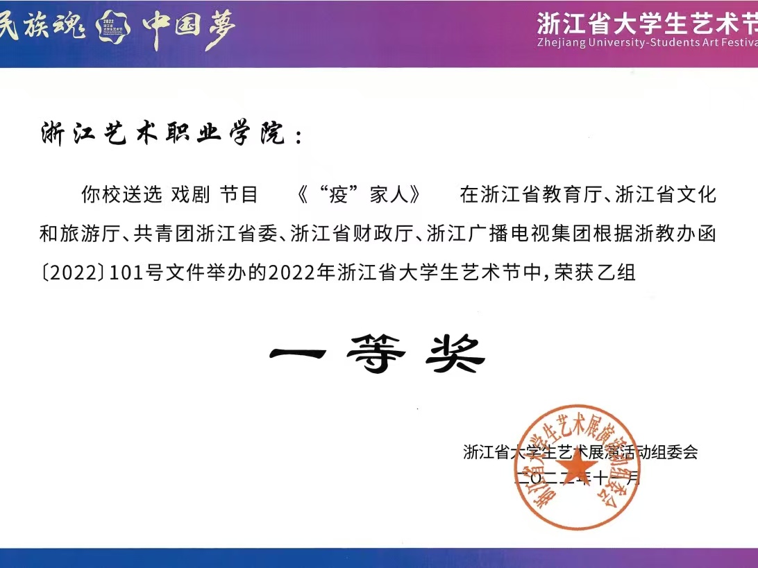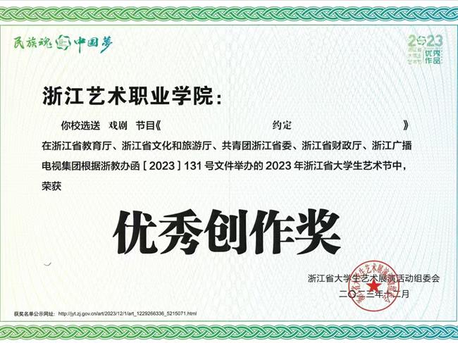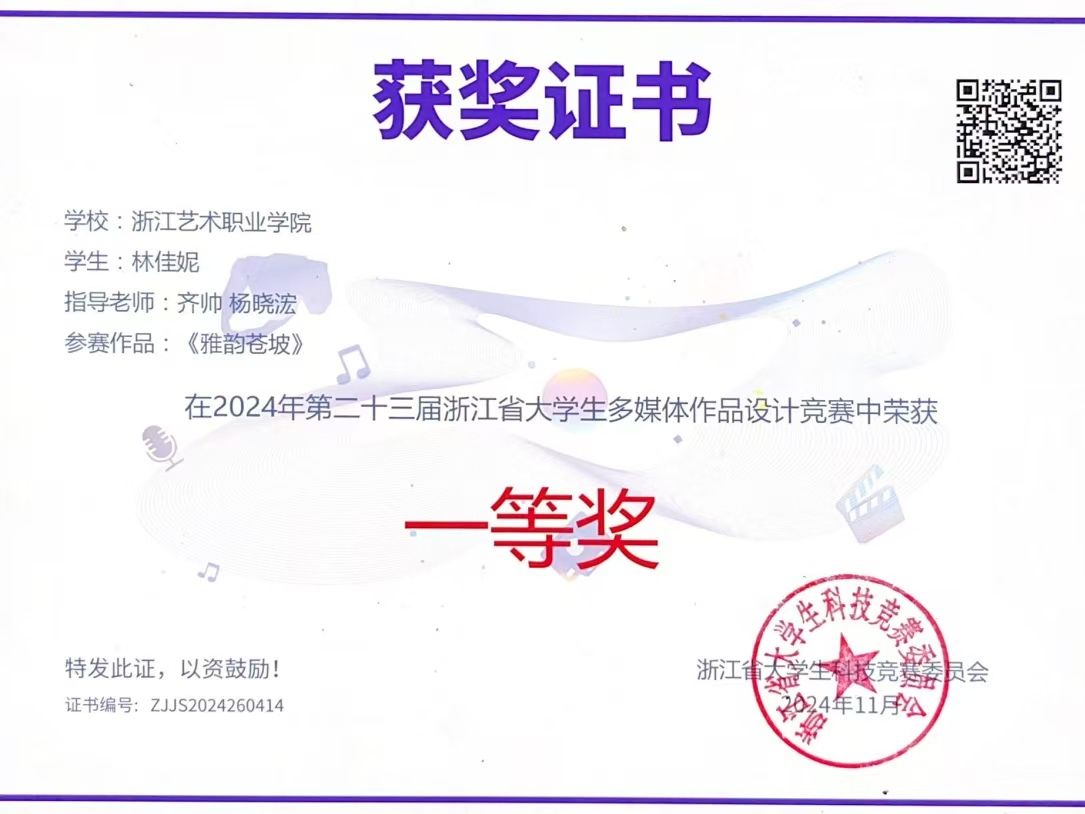 体系思政,涵育时代新人:学院构建“理论教育+专业实践+价值引领”三位一体思政体系,创新“专业+红色”育人路径。在课程建设方面,多门课程先后入选全国文化艺术职业院校线上思政教育典型案例与浙江省高校课程思政优秀教学案例,成果丰硕。在实践育人层面,原创清廉微电影《清溪谣》获全国高校廉洁教育特等奖与“玉琮杯”清廉微电影微视频大赛高校赛道银奖,示范引领效应显著;师生在浙江省国际大学生创新大赛中斩获佳绩,金奖项目《艺绎生辉——以红色故事点亮富民之路的演绎先锋》力拔头筹;“日行一善”机制年均服务超5000小时,“青春文旅志愿行”基地获评浙江省社区教育示范基地。