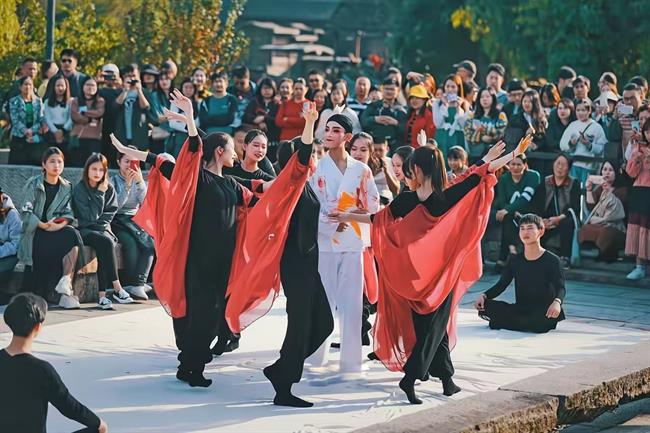 产教共建,助力文旅融合:与杭州演艺集团有限公司合作文旅演艺《西湖东坡》驻场秀,为学校首个实现“长周期演出、全流程参与、多专业协作”的产教融合典型项目,已累计完成演出超百场,创收逾百万。与杭州新青年歌舞团有限公司共建文化共富产业学院,成功承办萧山区农村文化礼堂建设现场会暨文化管家3.0推进会,打造现象级“国潮市集”,探索“艺术下沉”的共富新路径,形成了可复制、可推广的乡村文化振兴样板。两大项目互为支撑,共同构建了从市场演艺到公共文化服务的产教融合立体格局。