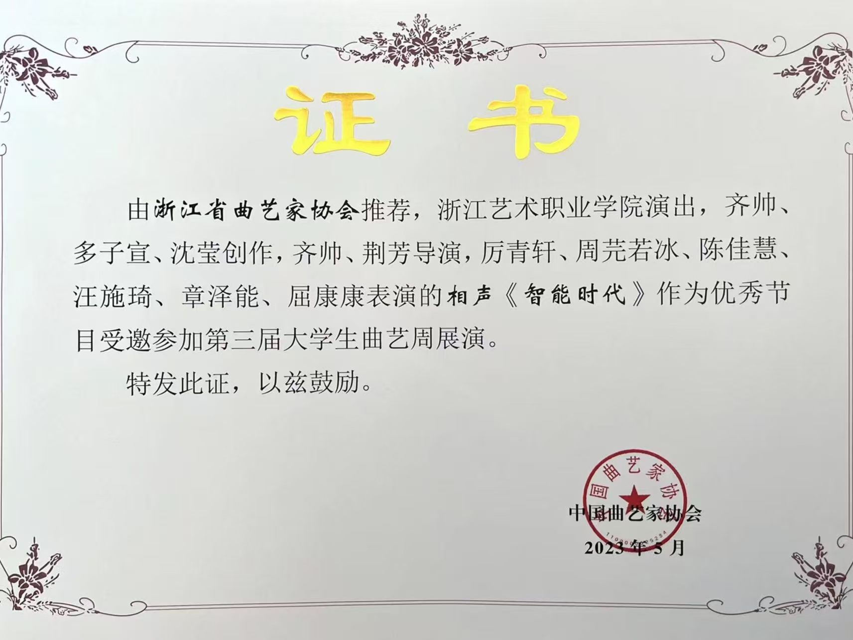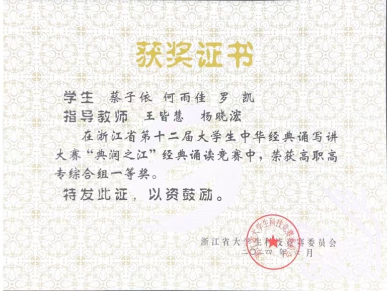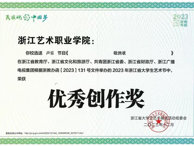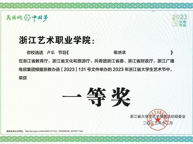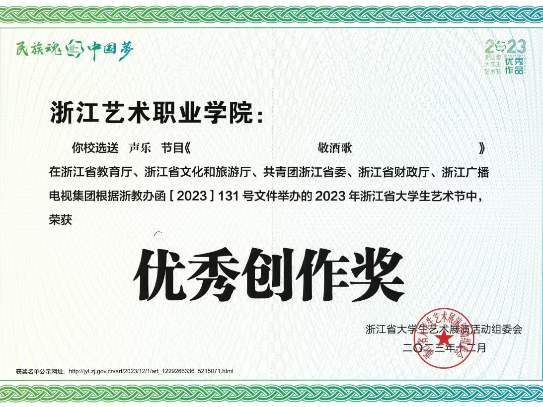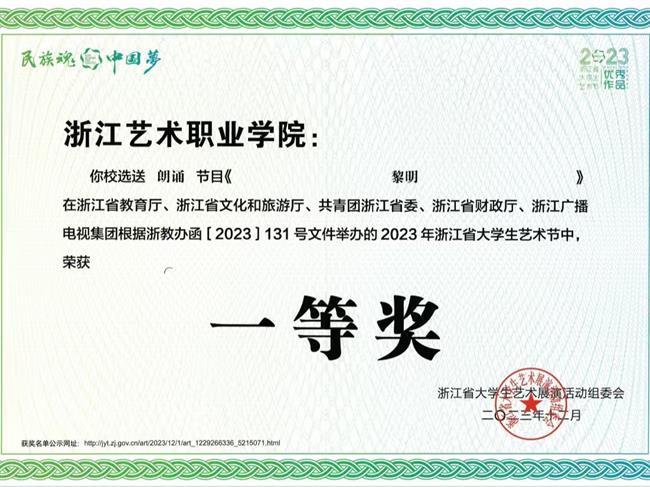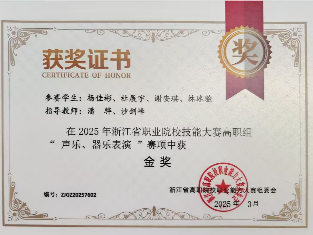 近年来,师生先后斩获全国大学生艺术展演“个人专项奖”、全国大学生曲艺优秀作品展演“优秀剧目”等重大荣誉。在省级竞赛中,学前教育团队荣获浙江省教师教学能力大赛一等奖并晋级国赛,创学校历史最佳成绩;学生夺得浙江省职业院校技能大赛声乐器乐表演赛项金奖、“诗画江南·活力浙江”金牌讲解员称号,并在浙江省大学生艺术节、浙江省中华经典诵写讲大赛、浙江省大学生多媒体竞赛、浙江省高等学校师范生教学竞赛等多项A类学科竞赛中累计荣获嘉奖60余项,充分彰显了学院人才培养的厚积薄发与全面质效。
