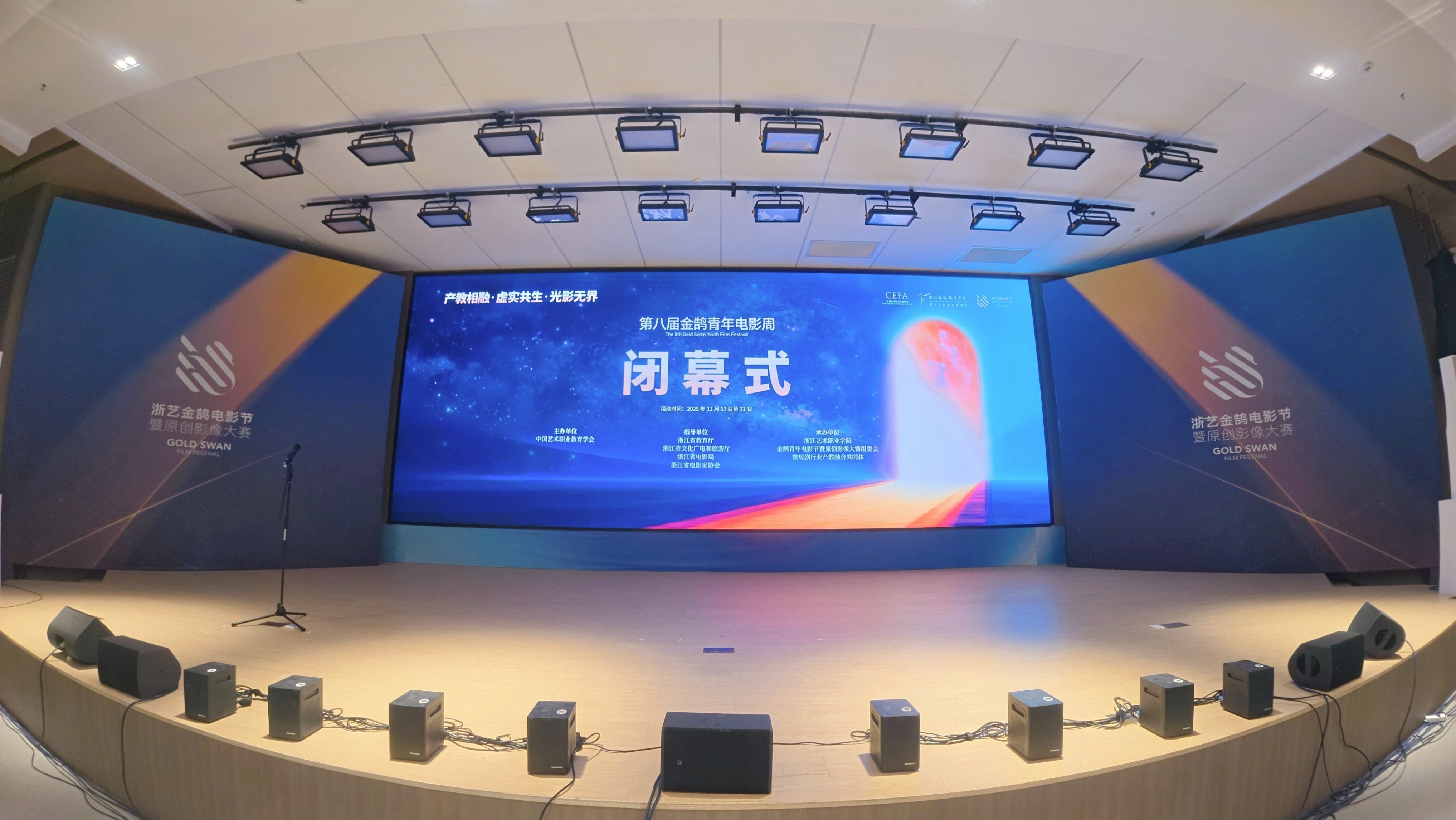 1121日晚,由浙江省教育厅、浙江省文化广电和旅游厅、浙江省电影局、浙江省电影家协会指导,中国艺术职业教育学会主办,浙江艺术职业学院、金鹄青年电影周暨原创影像大赛组委会、微短剧行业产教融合共同体联合承办的第八届金鹄青年电影周暨原创影像大赛,在浙江艺术职业学院落幕。