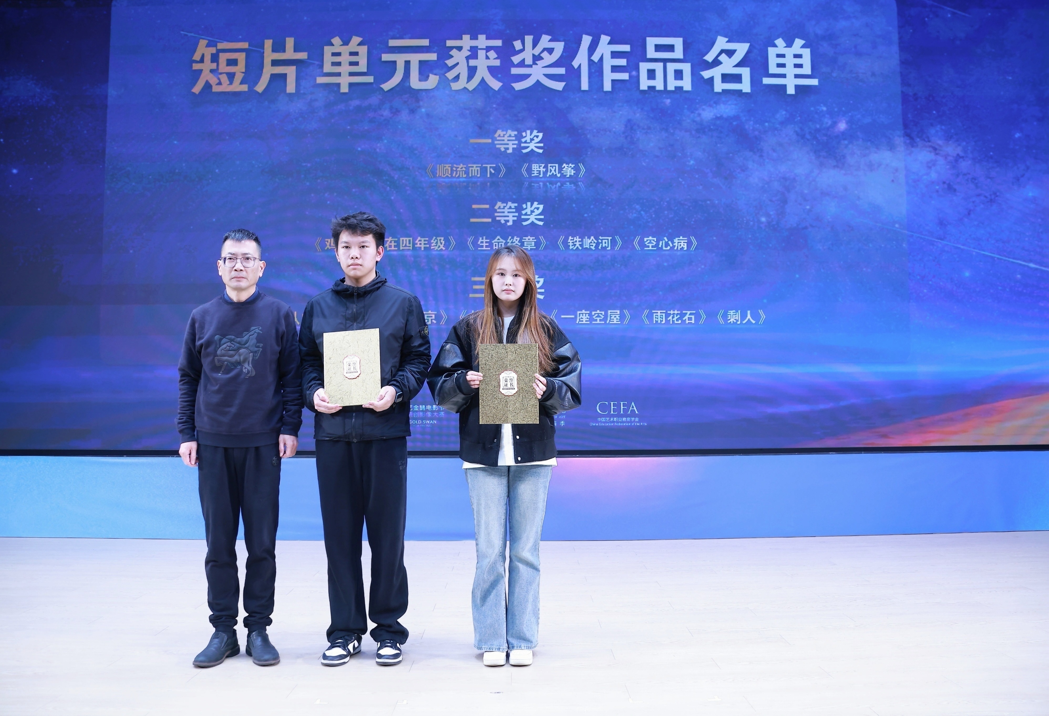 我们看到,一股充满着青春活力与创新创造的力量正注入影视行业,与过往的佳绩一起托举出属于电影人的荣耀奖杯。面对本届电影周产生的最佳导演奖、最佳编剧奖、最佳摄影奖等荣誉,我们倍感骄傲和自豪。青年电影人以影作奖,载誉而归,怀揣着这份底气将金鹄电影周越办越好,让影视行业越来越出彩。