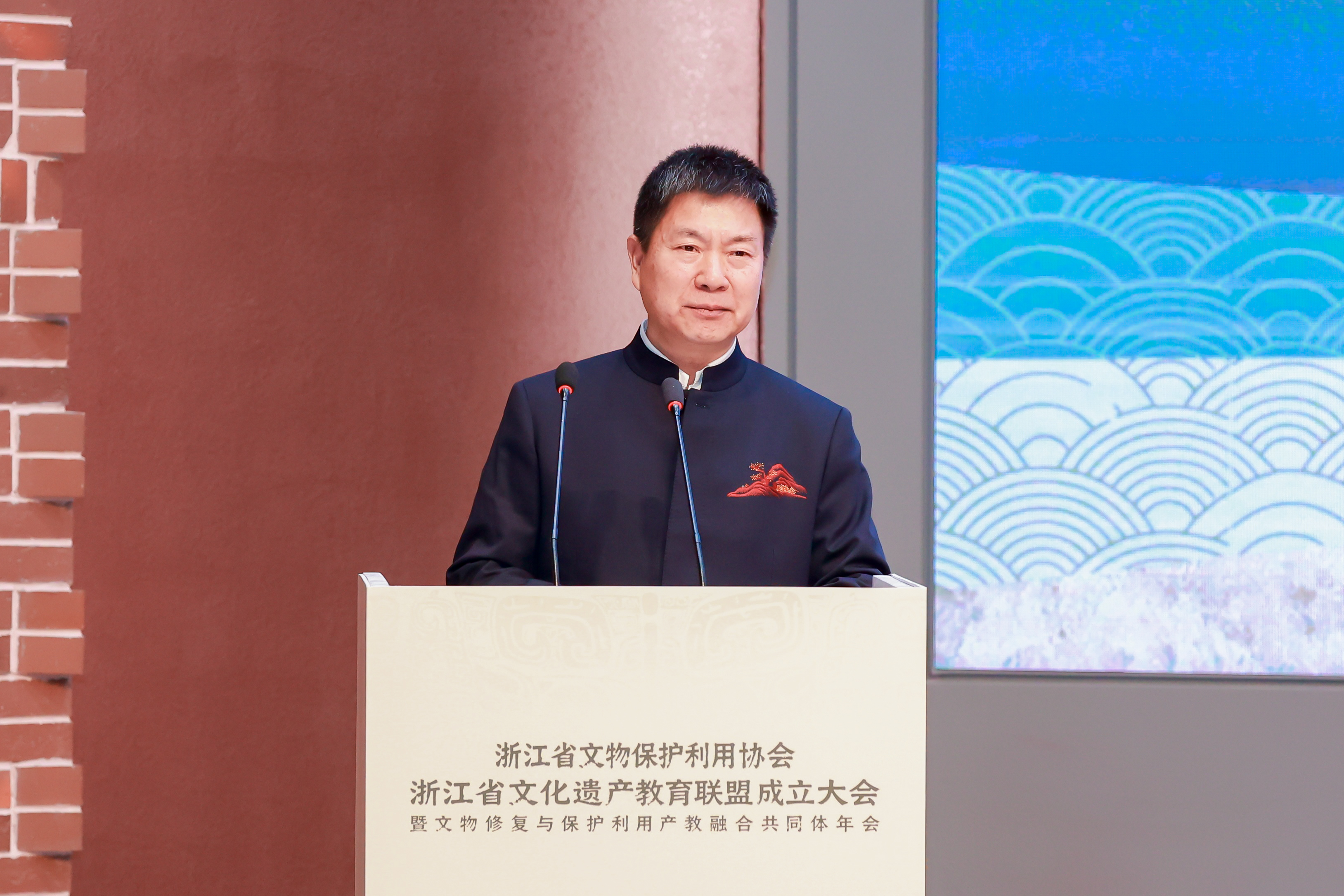 庞学铨致辞,他提出本次大会是落实国家文化强国战略的务实之举,是服务浙江“文化强省”建设的有力抓手,更是推动教育、科技与文化遗产事业深度融合的制度创新。希望各联盟、共同体单位携手共进,着力构建文化遗产保护与教育、技术创新与产学研融合的全链条育人体系,共同为传承中华文明、增强文化自信贡献浙江智慧与联盟力量。