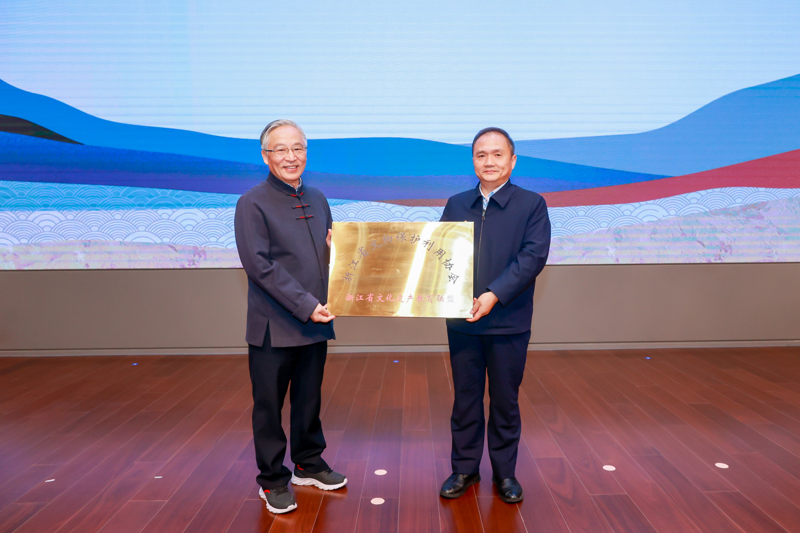 陆进、杨建武共同为浙江省文化遗产教育联盟揭牌。
