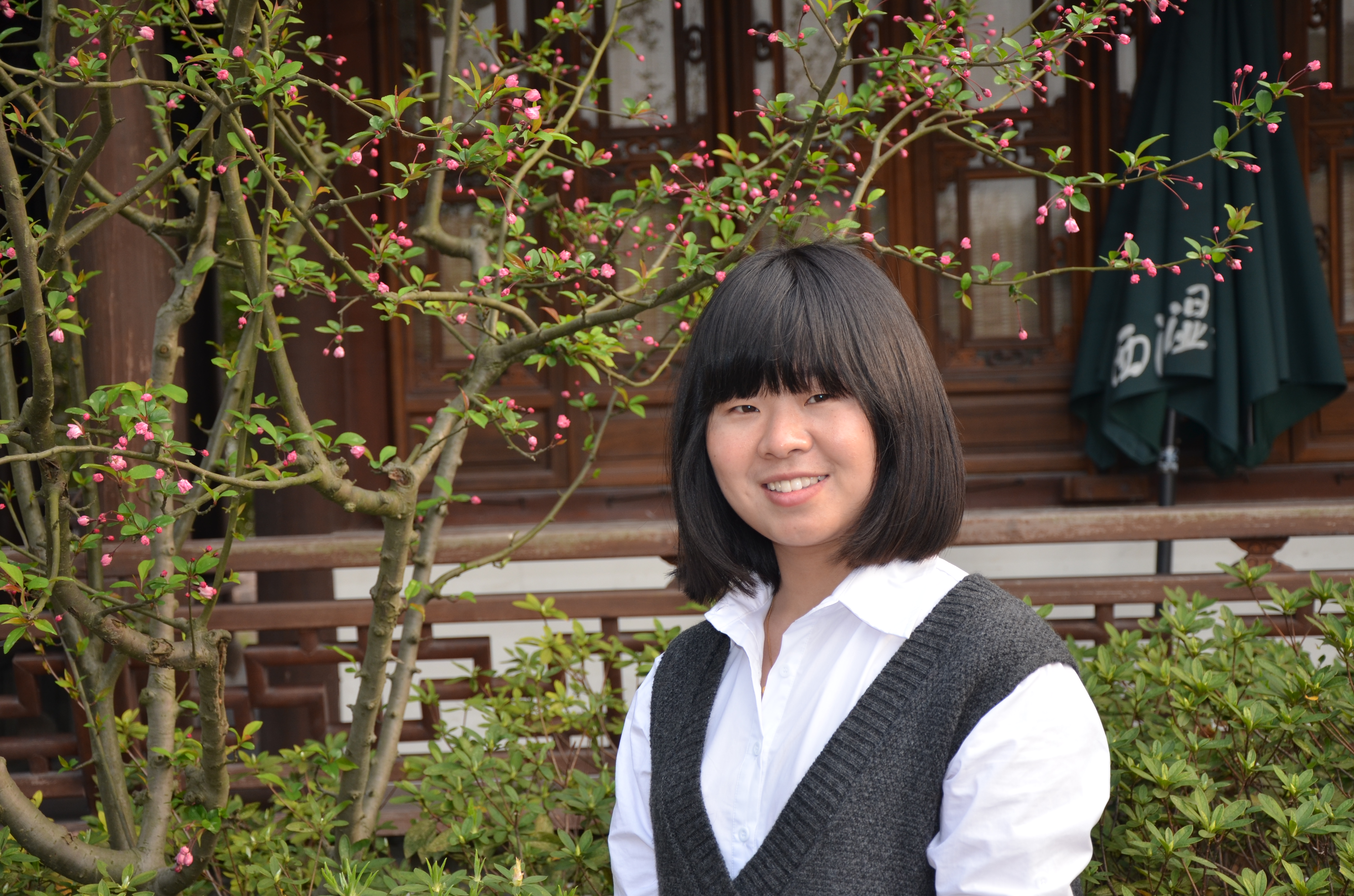 在楼梯转角,她低着头在我身边匆匆走过,风风火火的样子;校车上,她靠窗而坐,静静地看着窗外,像在思考着什么……这是我最初见到她的场景,我始终不能将一个文气的女孩和“拼命三姐”这个称呼联系在一起。这位明眸善睐、顾盼生辉的女子,正是我的专业老师——文化管理系青年教师蒋曼曼。