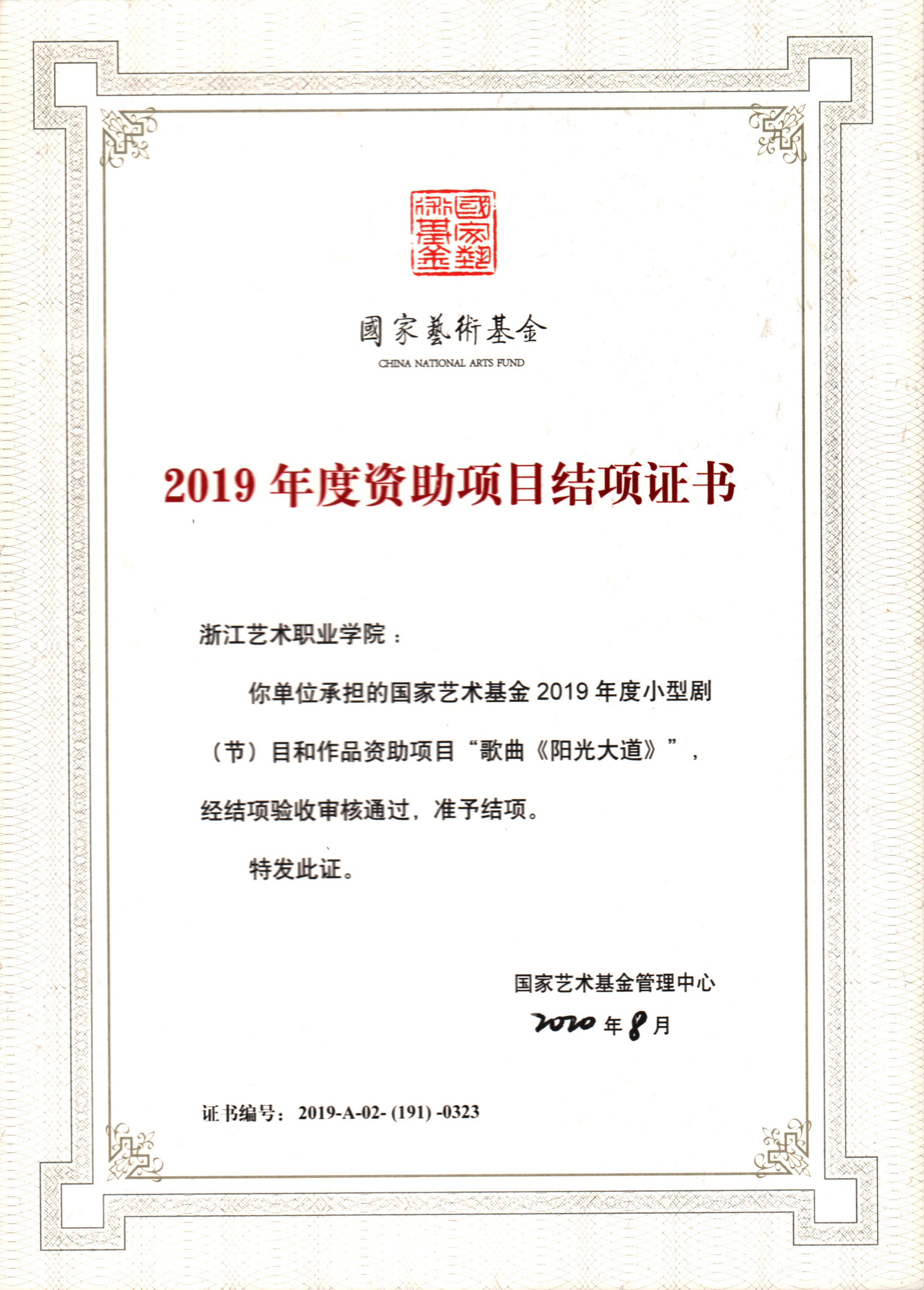 国家艺术基金项目歌曲《阳光大道》结题证书.jpg